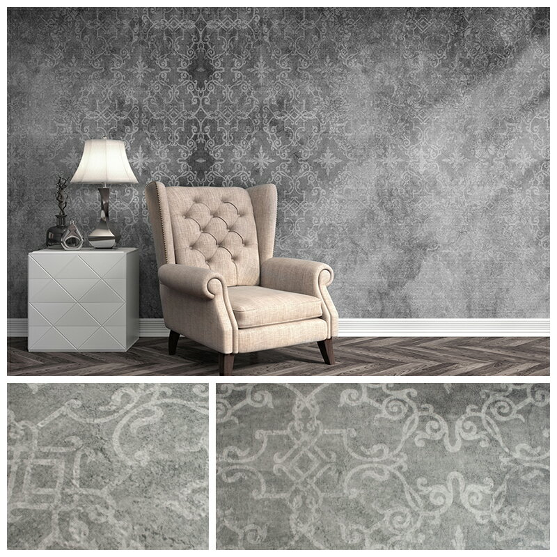 [10%OFFクーポン+20時〜P10倍×25日限定]輸入壁紙 おしゃれ 壁紙 クロス 不織布 WALLPERA ダマスク Mural 1637-001 Silver Duchess シルバーダトゥシィス 友安製作所